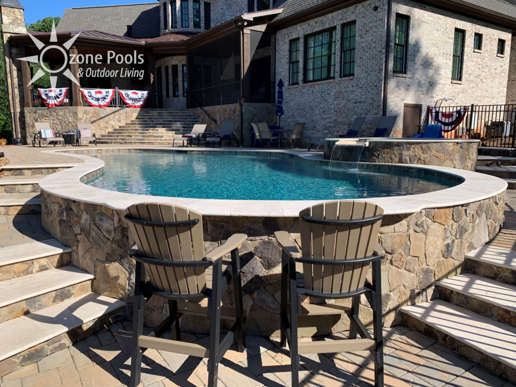 •Exposed pool wall with stone finish